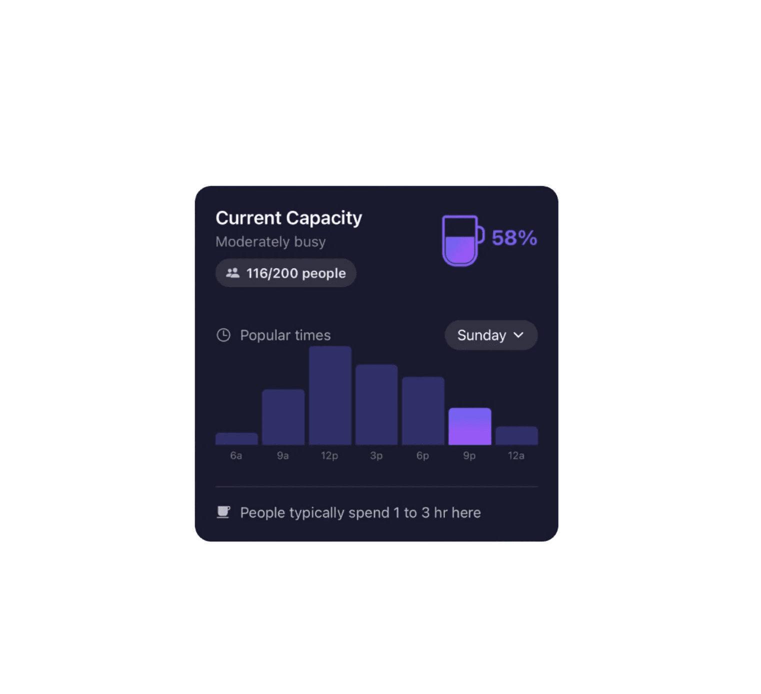 We've all been there. You walk 15 minutes to your favorite coffee shop, laptop in hand, only to find every seat taken. Availo uses real-time sensors to show you exactly how crowded a spot is before you leave. No more wasted trips.